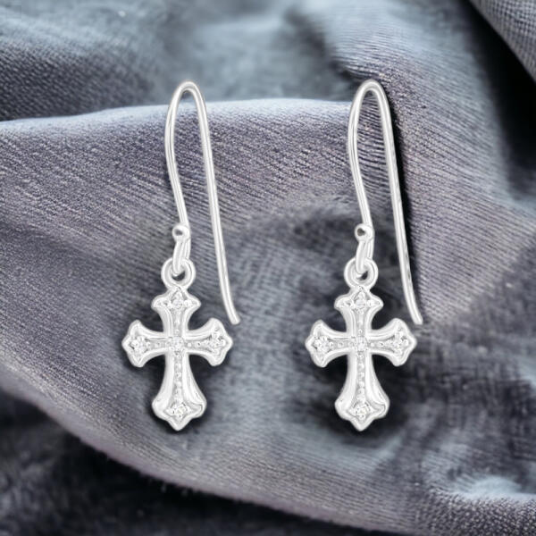 Az EZÜST KERESZT - 925 EZÜST CIRKON, LÓGÓ FÜLBEVALÓ egy rendkívül stílusos és elegáns darab, amely a nőiességet és a hitet ötvözi egyetlen kifejező ékszerben. A valódi ezüst kereszt és a cirkon díszítés együttese egyedi megjelenést kölcsönöz ennek a fülbevalónak. A fülbevaló anyaga 925 ezüst, mely magas minőségű és hosszú élettartamú alapanyagot jelent. A k