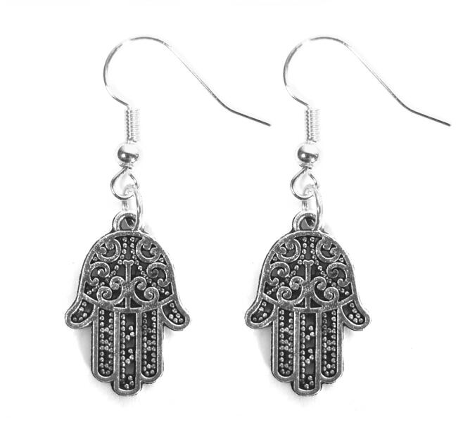 A függő színe nem választható, a képen látható színben küldjük. Az akasztó színét kiválaszthatod a listából, vagy írd be rendeléskor a megjegyzésbe. Alapesetben a képen látható összeállítást küldjük! Fati ma keze fülbevaló, választható arany vagy ezüst színű akasztóval. Paraméterek: A függő mérete 2x3 cm. A színe ezüst, a hozzá választható fülbevaló