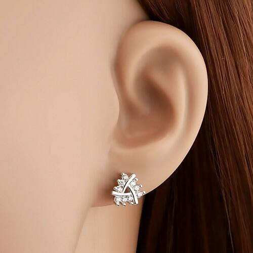 A 925 ezüst fülbevaló egy kis, csillogó háromszögből tevődik össze, amelynek az oldalait kerek, átlátszó cirkóniák hármasai alkotják, keskeny, fényes vonalakkal kombinálva. A vékony sávok a kis háromszög belső körvonalának az oldalait képezik, míg feltűnően meghosszabbítottak és a végei kilógnak. Biztonságos viselését stekker teszi lehetővé. Fülbevaló méret