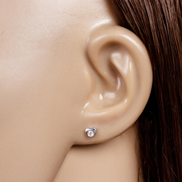 585 fehér aranyból készült gyémánt fülbevaló, sima fényes szívvel díszítve. A szív közepébe egy kerek, átlátszó briliáns van beágyazva. Stekkeres zárral rendelkezik. Fülbevaló méretei: 4,5 x 4 mm A gyémántok teljes karátszáma: 0,080 ct Gyémánt átmérő: 2,1 mm Tisztaság: SI Szín: H A fülbevaló súlya: 0,49 g Fémjel - van. Az ár egy párra értendő. Kiváló mi