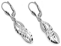Fülbevaló díszített vonalakkal és cirkóniákkal fehéraranyból, modell IZ24790A