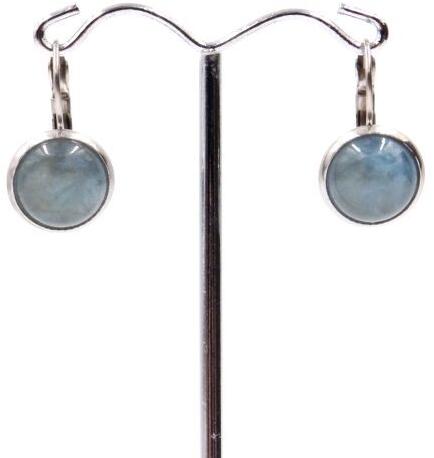Félgömb alakú cabochon akvamarin drágakőből készült fülbevaló. A fülbevaló fém része orvosi acél. Az akvamarin mérete: 8 mm. Akvamarin kristály gyógyhatása
