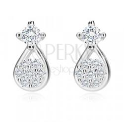 A 925 ezüst fülbevaló egy átlátszó, foglalatba helyezett cirkóniából áll, amelynek az oldalai egységesek és az eleje egy rombusz formára hasonlít. Közvetlenül ez alatt egy könnycsepp körvonala helyezkedik el. Ezt apró csillogó cirkóniák díszítik, amelyek virág alakban vannak elrendezve. A könnycsepp széleit egy ezüst színű vonal alkotja. Stekkeres zárszerkezet. A fü