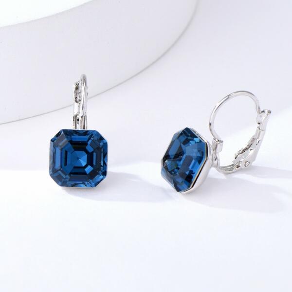 Cikkszám: 0233 Akasztós, kapcsos fülbevaló: - platina bevonattal, - sötétkék Swarovski kristállyal. Hossza: 1,8 cm. A kristály mérete: 1 cm x 1 cm. Súlya: 3 g / pár. Alapanyaga: minőségi fémötvözet. Gyönyörű, exkluzív, Swarovski kristályos ékszer. A megadott méreteket kérjük vegyék figyelembe!