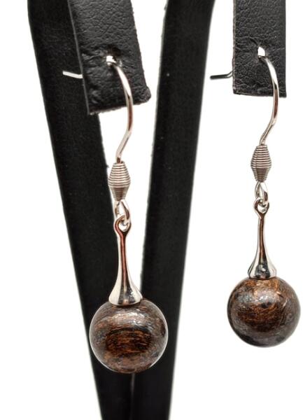 Bronzit fülbevaló (kispálca lógó golyó Ásvány fülbevaló) Egyedi ásvány ékszer.