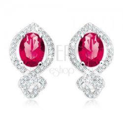 Ovális cirkóniából álló 925 ezüst fülbevaló, amely rózsaszín-piros árnyalatú és gazdagon átlátszó cirkóniával kirakott szégély díszíti. A kontúr vége csillogó csomóval van befejezve. A fülbevaló orosz zárral kapcsolódik. A fülbevaló méretei: 10 x 17 mmA fülbevaló súlya 4,1 gFémjelzéssel ellátott. Az ár egy párra vonatkozik.