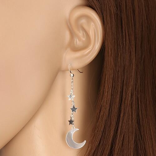 A fülbevaló 925 ezüstből készült, ovális szemekből álló lánc három lapos ötágú, rögzített csillaggal. A lánc egy nagyobb lapos félholddal zárul. A függők felülete sima és fényes. Akasztós fülbevaló egy gyönggyel. A fülbevaló méretei (akasztóval): 13 x 62 mmA fülbevaló súlya: 2,17 gFémjelzéssel ellátott. Az ár egy párra érvényes.