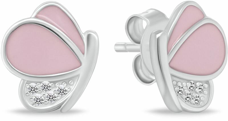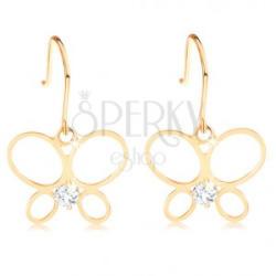 A sárga 14K aranyból készült, gyémánt fülbevalót egy fényes, vékony lepke körvonal alkotja, amelynek az alsó részét egy csillogó, átlátszó briliáns díszíti. A lepke szárnyai négy összekapcsolt, ovális körvonalból állnak. A fülbevaló afrikai horgokon függ. Fülbevaló méretei: 10 x 9 mmEgy gyémánt átmérője: 2 mmGyémántok teljes súlya: 0,074 ctTisztaság: SISz