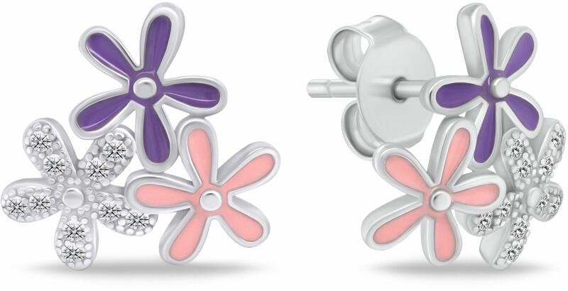 Fehérarany fülbevaló újszülöttnek Virág cirkóniával, modell IZ27803