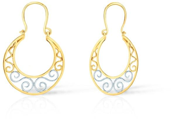 A kombinált 14K aranyból készült, gyémánt fülbevalót három hullámos, különböző hosszúságú sáv alkotja, amelyeket két csillogó, átlátszó brilliáns díszít. Két hullám sárga aranyból készült, egyet pedig fehér arany réteg borít. Biztonságos viselését stekker teszi lehetővé. Fülbevaló méretei: 5 x 7 mmEgy gyémánt átmérője: 1,5 mmGyémántok teljes súlya