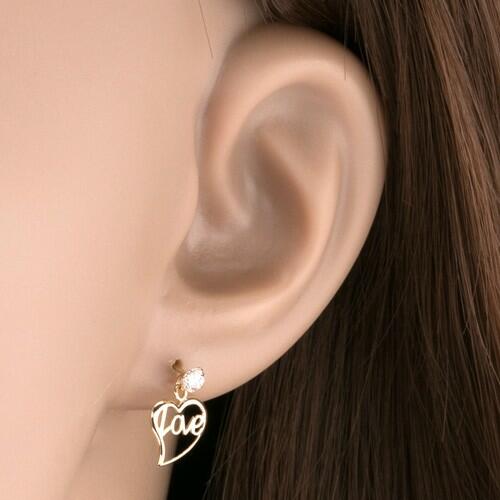 Fülbevaló 14K sárga aranyból kerek csillogó átlátszó cirkóniás beszúróból, melyen aszimmetrikus szívkörvonal függ. A körvonal közepébe fényes "Love" - "Szerelem" felirat található. A fülbevaló kapcsolása stekkeres. Fülbevaló mérete: 9 x 12 mmFülbevaló súlya: 0,60 gFémjelzéssel ellátott. Az ár egy párra vonatkozik.