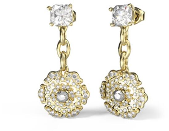 A GUESS ékszerkollekciói forradalmasítják a páratlan látványt az elegancia és a modern vonalvezetés változatosságával. A márka ikonikus logója, a fordított háromszög és egyes modelleknél, az eredeti Swarovski kristály kombinációja gyakori díszítő elem egyes fülbevalók, karláncok vagy nyakláncok esetén. Az ékszerek alapanyaga rozdamentes acél, rhodium vagy aranyozott