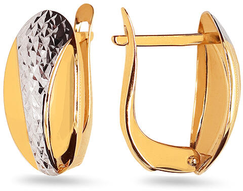 A Lainey arany fülbevaló 14 karátos kombinált aranyból készült. Az ékszer felülete a fehér és sárga arany kétszínű tónusával tűnik ki. A fehérarany színt ezenkívül egy dekoratív gravírozás díszíti a még nagyobb fülbevaló ligot érdekében.