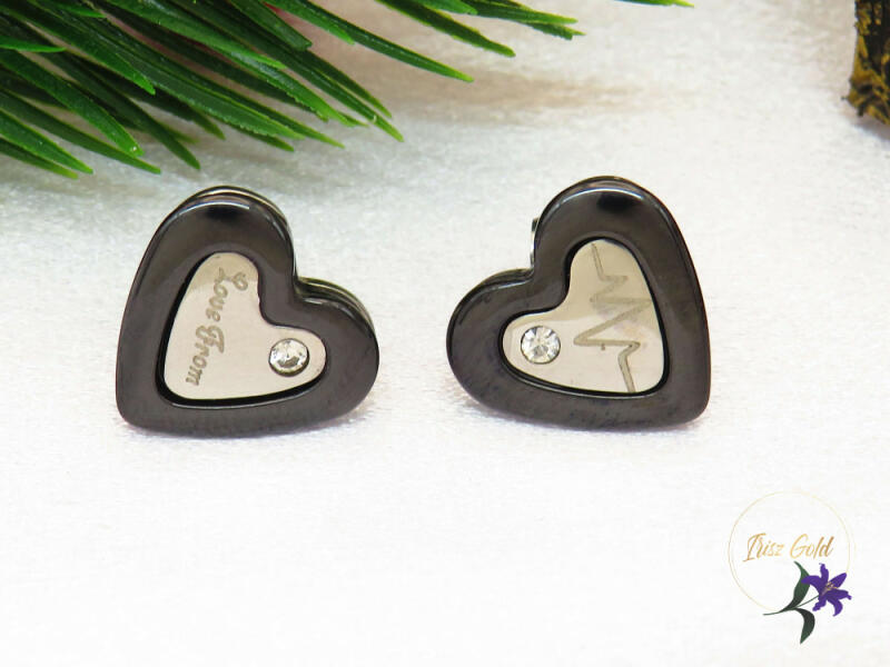 Antiallergén nemesacél kerámia fülbevaló Szív alakú benne pici kő EKG-jel és "love from " felirat Szin:rodium Méret: 12x15 mm Bedugós A forgalmazott divatékszerek alapanyaga nikkel és ólommentes ezért többnyire nem okoznak allergiás tüneteket, nyugodtan hordhatják fémérzékeny emberek is. Általában nem színezik a bőrt és más divatékszerekhez képest nagyságrendekkel jo