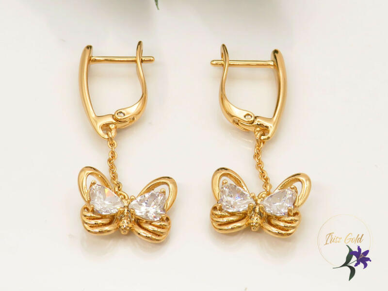 Goldfilled csüngős fehér cirkónia köves lepkés fülbevaló Szin: 18K Méret: 35x15mm Zár: Franciakapocs A forgalmazott divatékszerek alapanyaga nikkel és ólommentes ezért többnyire nem okoznak allergiás tüneteket, nyugodtan hordhatják fémérzékeny emberek is. Általában nem színezik a bőrt és más divatékszerekhez képest nagyságrendekkel jobb kopásállósággal rendelkezne
