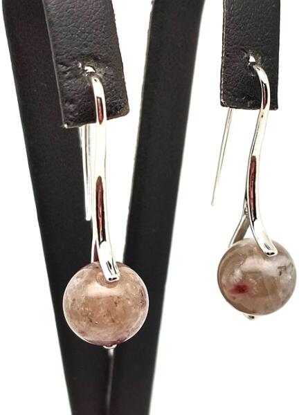 Rubellit fülbevaló (golyó ívelt lógó Ásvány fülbevaló) Egyedi ásvány ékszer.