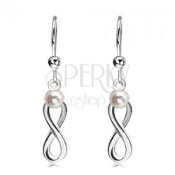 A 925 ezüst fülbevalót egy fényes, sima felületű végtelen szimbólum alkotja, amelynek felső részét egy félgömb alakú, fehér színű édesvizi gyöngy díszíti. A fülbevaló afrikai horgon függ apró golyóval. Díszes rész méretei: 6 x 16 mmFülbevaló teljes hossza (kapoccsal): 29 mmFülbevaló súlya: 2,1 gFémjelzéssel ellátott. Az ár egy párra vonatkozik.