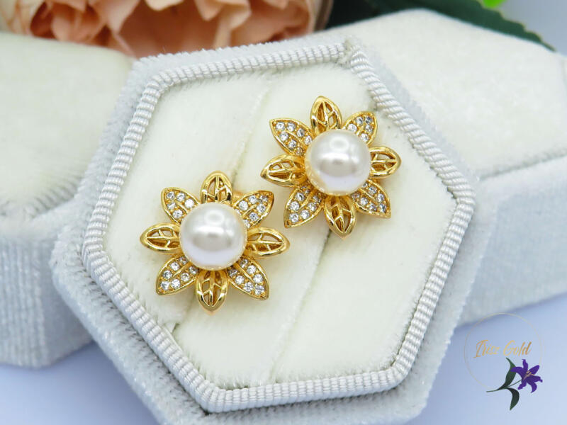 Gold Filled elegáns virág fülbevaló középen gyöngy díszítéssel Szin: 18K Méret: 15x15 gyöngy 5mm Beszúrós. szár 10mm A forgalmazott divatékszerek alapanyaga nikkel és ólommentes ezért többnyire nem okoznak allergiás tüneteket, nyugodtan hordhatják fémérzékeny emberek is. Általában nem színezik a bőrt és más divatékszerekhez képest nagyságrendekkel jobb kopásáll
