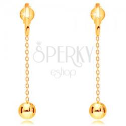 A sárga 14K arany fülbevalót egy vékony pálca és lánc alkotja, amelyen egy golyó függ. A lánc apró, ovális szemekből áll. A pálca és a golyó fényes, sima felületű. Biztonságos viselését stekker teszi lehetővé. Fülbevaló méretei: 5 x 35 mmFülbevaló súlya: 0,6 gFémjelzéssel ellátott. Az ár egy párra vonatkozik.