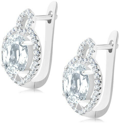 A ródiummal kezelt 925 ezüst fülbevaló egy csiszolt, átlátszó cirkónia oválisból áll, amelyet egy vékony, búzaszem alakú és cirkóniákkal kirakott körvonal szegélyez. A fülbevaló tetején egy kisebb búzaszem körvonala található, amelyet csillogó cirkóniák díszítenek. Orosz-zár. A fülbevaló mérete: 11 x 18 mmA fülbevaló súlya: 5,6 gFémjelzéssel ellátva. Az ár