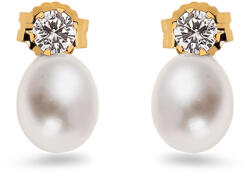 Stekkeres arany fülbevaló igazgyönggyel és cirkóniákkal, modell IZ28299