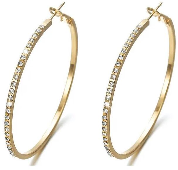 Emilia Fülbevaló Szépséges Emilia fülbevaló szuper áron. A fülbevaló cirkónia ékkövekkel díszített és nem tartalmaz nikkelt, ezért érzékeny bőrű emberek is viselhetik. Tulajdonságok: A fülbevaló mérete: 5,5cm x 0,2cm Díszítése: cirkónia ékkövek Anyaga: fém és cink ötvözete Szín: Arany