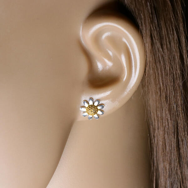 A 925 ezüst fülbevalók egy százszorszép virágot ábrázolnak, amelynek sárga, domború, pöttyös közepén fényes, sima szirmok vannak. A fülbevaló stekker zárral rendelkezik. A fülbevaló átmérője: 10 mm A fülbevaló súlya: 1,3 g Fémjel - Van. Az ár egy párra vonatkozik.