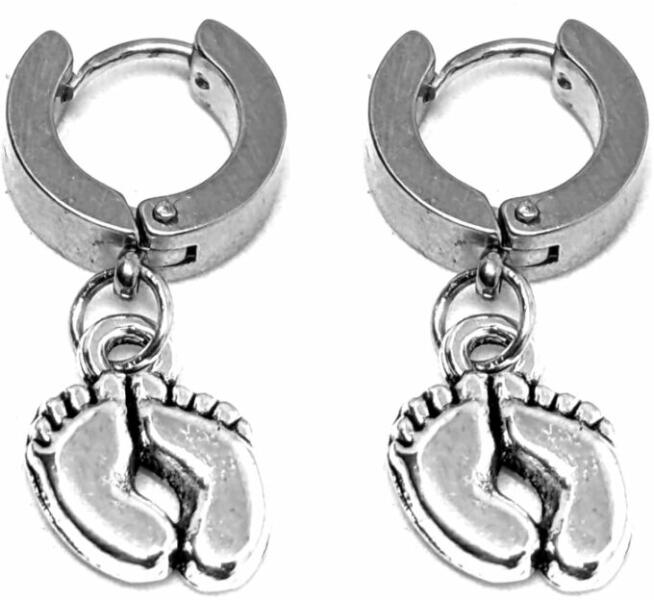 Babatalp fülbevaló. Paraméterek: A függő mérete 1,3x1 cm. A színe ezüst, anyaga fémötvözet. Akasztó rozsdamentes acélból készült.