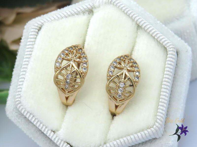 Gold Filled gyönyörű metszett elegáns fülbevaló kis cirkóna kövekkel díszítve Szin: 18K Méret: 10x15mm Zár: karika , belső méret 12mm A forgalmazott divatékszerek alapanyaga nikkel és ólommentes ezért többnyire nem okoznak allergiás tüneteket, nyugodtan hordhatják fémérzékeny emberek is. Általában nem színezik a bőrt és más divatékszerekhez képest nagyságrendekkel