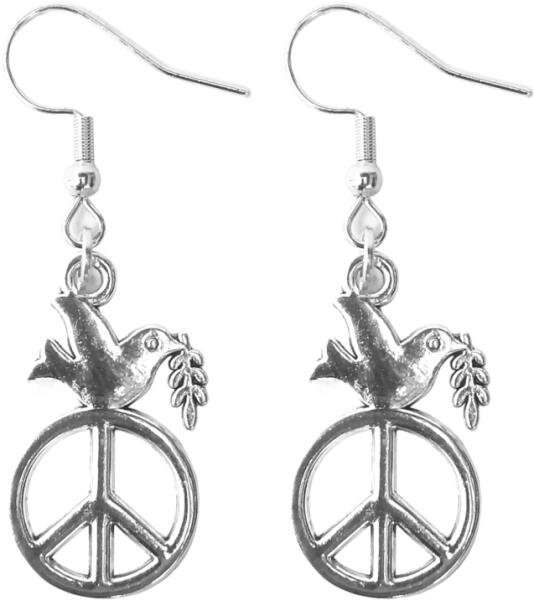 Békegalambos charm fülbevaló. Paramét erek: A függő mérete 2 cm. Fémötvözet. Akasztó rozsdamentes acélból készült.