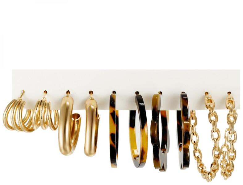 Naomi Fülbevalószett Naomi fülbevalószett nagyszerű áron. A készlet 5 pár különböző formájú, méretű és díszítésű fülbevalót tartalmaz. Nem tartalmaznak nikkelt, ezért érzékeny bőrű emberek is viselhetik. Tulajdonságok: Anyaga: Fém és cink ötvözet Szín: Arany/Barna A fülbevalók mérete: 1,5cm–4cm