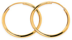 14 karátos sárga aranyból készült karika alakú arany fülbevalók. Az ékszerek felületi kezelése magasfényű.