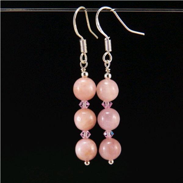 6-7mm-es természetes rózsaszín kunzit gyöngyből és Swarovski kristályokból készült fülbevaló. Több típusú fülbevaló akasztóval is kérhető Bővebb információ: "ADATOK PARAMÉTEREK" fül alatt. A kunzit vélt gyógyhatása