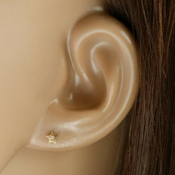 A 14K sárga aranyból készült gyémánt fülbevaló egy kis ötágú csillaggal , amelybe egy kis briliáns van beágyazva. A fülbevaló tükörsimára csiszolt felülettel rendelkezik. A fülbevaló stekkeres zárral rendelkezik. Fülbevalók mérete: 4 x 4 mmEgy gyémánt átmérő: 1,4 mmGyémánt karát tömege: 0,022 ctTisztaság: SISzín: H-IFülbevalók súlya: 0,2 gFémjel- van Az ár