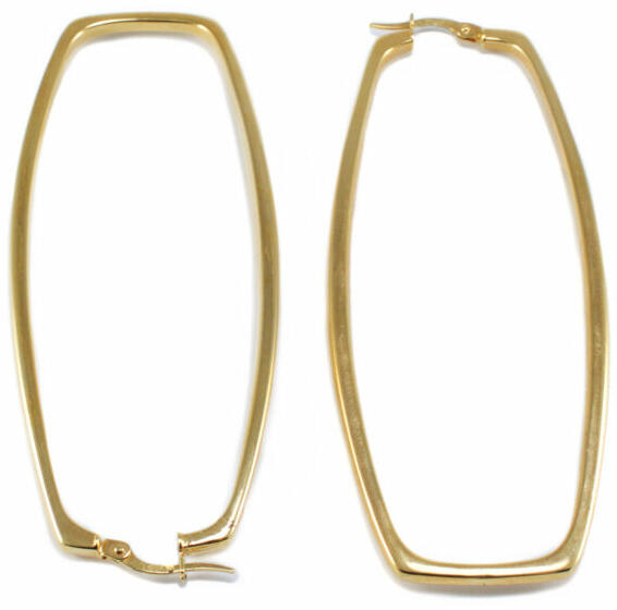 Modern stílusú, mutatós, ovális kialakítású, üreges sárga arany fülbevaló.