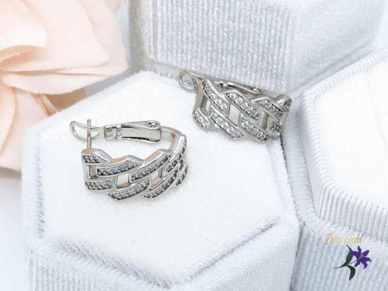 Gold Filled félkarika fülbevaló láncszem mintás adó cirkóna kővel Szin: rodium Méret: 8x15mm Zár: bedugós rápattintós zárral A forgalmazott divatékszerek alapanyaga nikkel és ólommentes ezért többnyire nem okoznak allergiás tüneteket, nyugodtan hordhatják fémérzékeny emberek is. Általában nem színezik a bőrt és más divatékszerekhez képest nagyságrendekkel jobb kop