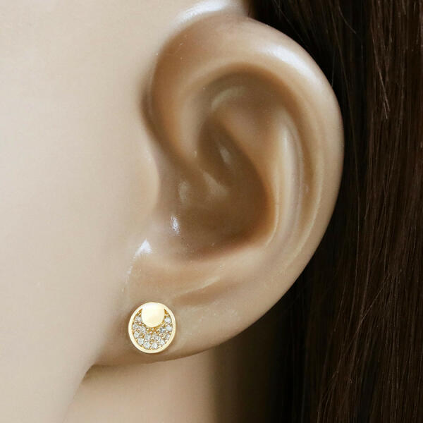 A 9K arany fülbevaló kör alakú, sima és fényes felületű. A fülbevaló tetején egy hold körvonala látható, amelyet kerek cirkóniák és apró fényes pontok díszítenek. A fülbevalók stekker zárral rendelkezik. A fülbevaló átmérője: 7 mm A fülbevaló súlya: 0,5 g Fémjel - Van. Az ár egy párra vonatkozik!