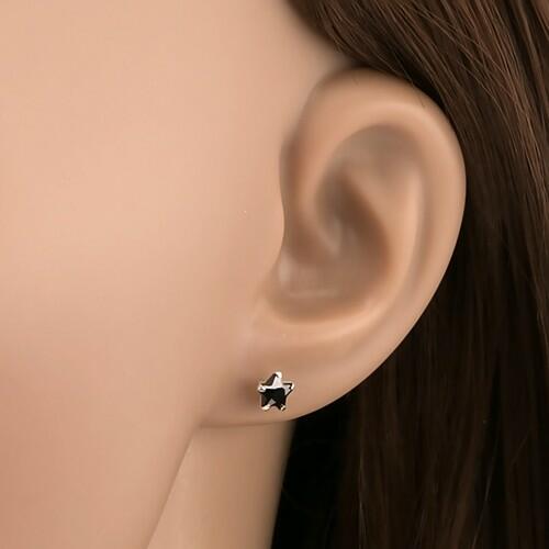 Beszúrós fülbevaló 925 ezüstből fekete csiszolt cirkóniából, mely ötágú csillag alakra csiszolt és öt karommal megfogott foglalatba van ültetve. A fülbevaló méretei: 5 x 5 mmA fülbevaló súlya: 0,49 gFémjelzéssel ellátott. Az ár egy párra vonatkozik.