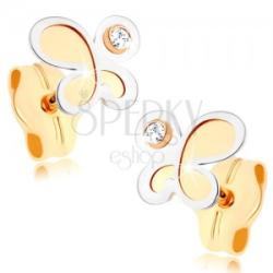 Fülbevaló 9K sárga aranyból kis pillangó alakban, matt felülettel. A pillangó egyik fele és a másik szárnyának a körvonala fényes ezüst kivitelezésű, ródiummal kezelt. Az ezüst oldalon egy kis kerek cirkónia díszeleg. A fülbevaló biztonságos viselését a stekker biztosítja. A fülbevaló méretei: 6 x 5 mmA fülbevaló súlya: 0,2 gFémjelzéssel ellátott. Az ár egy pár