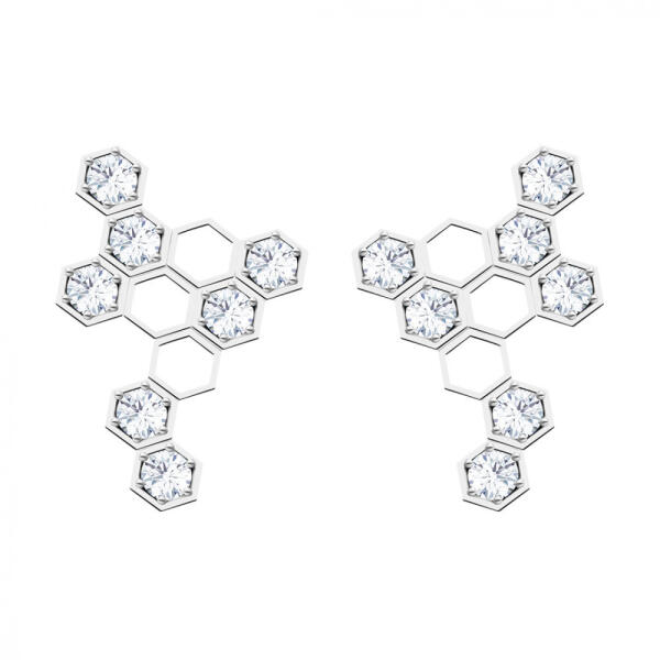 A Lumina ezüst fülbevaló kocka cirkóniával a tökéletes kiegészítő, hogy ragyogni tudj. A Lumina jelentése fény. És a fény, annak tükröződései és fénytörései a tökéletesen vágott cirkóniumkövek játékát jelentik, amelyek ezüst ékszerbe vannak foglalva. A fülbevalók nemcsak csillogásukkal és a színek finom kombinációjával, hanem kis hatszög formájú, modern,