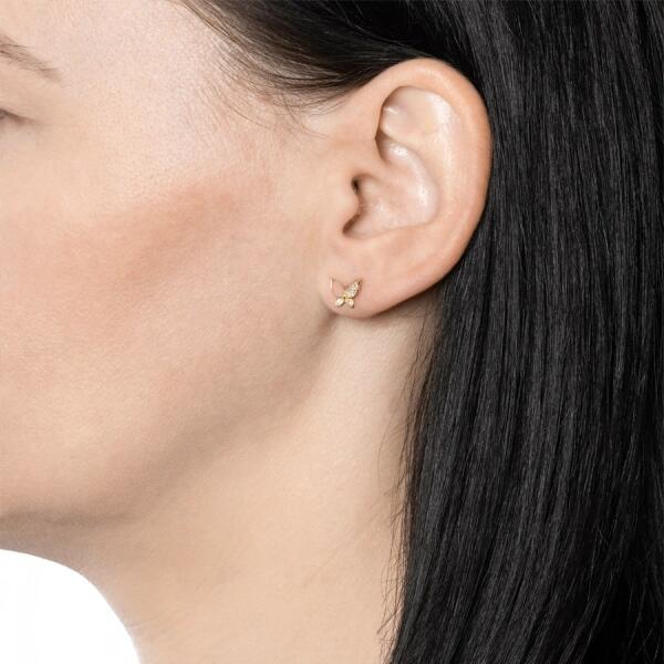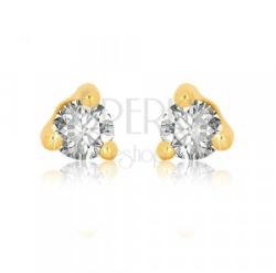 9K sárga arany fülbevaló. A fülbevaló közepén egy háromszög található melyben egy kerek, átlátszó cirkónia van elhelyezve háromkarmos foglalatban. A fülbevaló biztonságos viselését stekkeres zárszerkezet teszi lehetővé. Fülbevaló méretei: 4 x 4 mmFülbevaló súlya: 0,3 gFémjelzéssel ellátott. Az ár egy párra vonatkozik.
