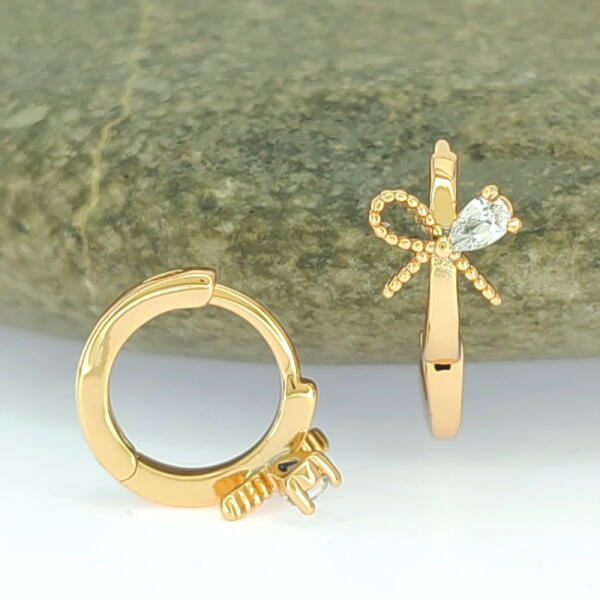 Gold Filled elegans középen kis apró köves fülbevaló Szin: 18K Méret : 15x 4mm Zár: francia kapocs mélység 12mm A forgalmazott divatékszerek alapanyaga nikkel és ólommentes ezért többnyire nem okoznak allergiás tüneteket, nyugodtan hordhatják fémérzékeny emberek is. Általában nem színezik a bőrt és más divatékszerekhez képest nagyságrendekkel jobb kopásállósággal