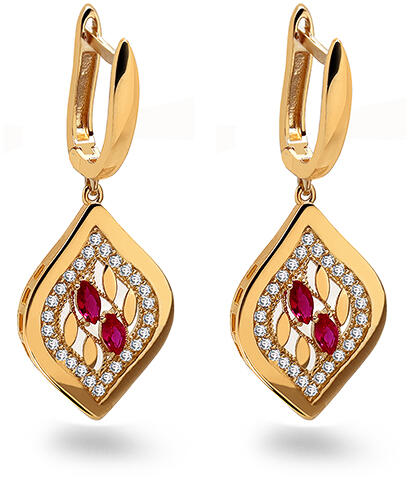 Díszített lógó fülbevaló szimulált rubinnal, modell IZ31411