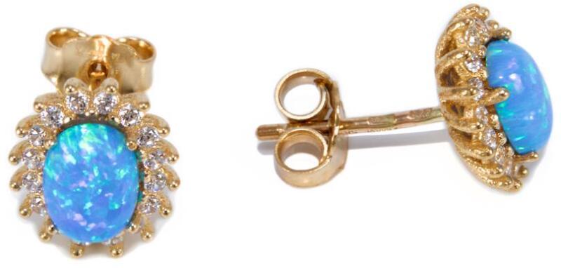 Klasszikus és kedvelt fazonú, cirkónával és opál kővel (nem valódi) ékített, karmos foglalatú ovális arany fülbevaló.