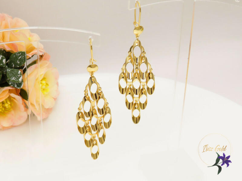 Goldfilled rombuszalakú hosszú csüngős fülbevaló Szin: 18K Méret: 70x20mm Zár: beakasztós, zárral A forgalmazott divatékszerek alapanyaga nikkel és ólommentes ezért többnyire nem okoznak allergiás tüneteket, nyugodtan hordhatják fémérzékeny emberek is. Általában nem színezik a bőrt és más divatékszerekhez képest nagyságrendekkel jobb kopásállósággal rendelkeznek.