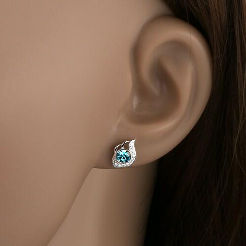 925 ezüst fülbevaló aszimmetrikus könnycsepp kontúrral átlátszó cirkóniákból, amely közepén egy nagyobb kő található kék színben. A részleges körvonalat két, sima, fényes félhold egészíti ki. Biztonságos viselését szilikon stekker biztosítja. A fülbevaló méretei: 7 x 11 mmA fülbevaló súlya: 1,3 gFémjelzéssel ellátott. Az ár egy párra vonatkozik.