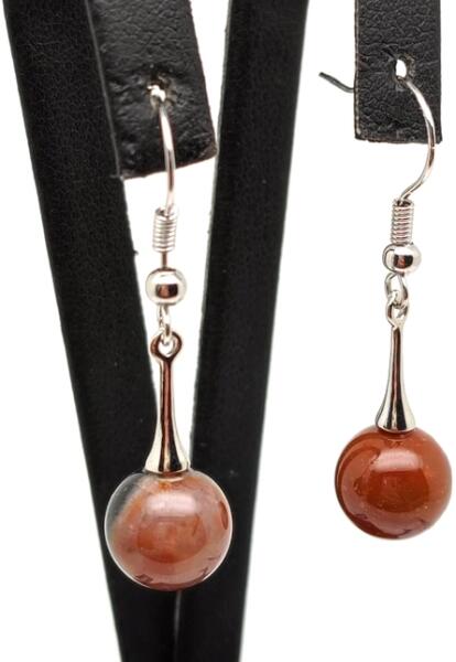 Sardonyx fülbevaló (kispálca lógó golyó Ásvány fülbevaló) Egyedi ásvány ékszer.