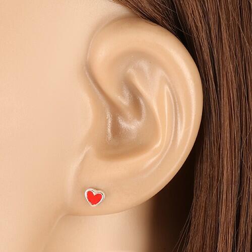 A szívecske alakú fülbevaló 925 ezüstből készült. A belseje piros mázzal van bevonva, fényes szegéllyel. A fülbevaló felülete fényes és sima. Stekkeres zárszerkezet. Méretek: 5 x 4 mmSúly: 0,4 gFémjelzéssel ellátott. Az ár egy párra vonatkozik.