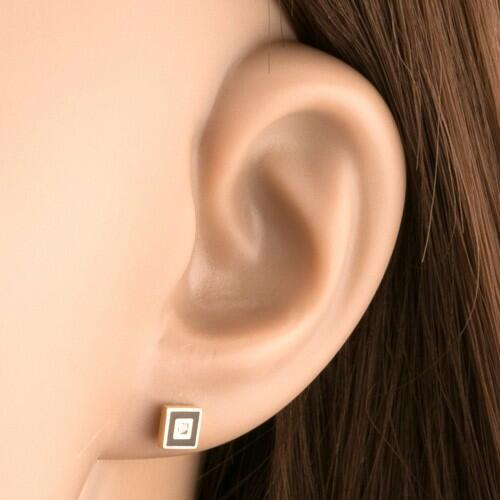 Bedugós fülbevaló 9K sárga aranyból négyzet alakban, amely közepébe egy csillogó, kerek, átlátszó cirkónia van ültetve. A négyzetet egy feltűnő kontúr díszíti fekete fénymázzal. Biztonságos viselését stekker biztosítja. A fülbevaló méretei: 5 x 5 mmA fülbevaló súlya: 0,57 gFémjelzéssel ellátott. Az ár egy párra vonatkozik. .