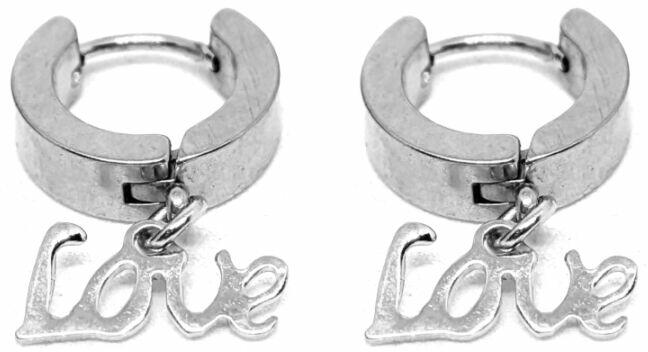 Arany színű nemesacél Love felirat fülbevaló, ezüst színben. Romantikus, kifinomult ékszer. Paraméterek: A függő mérete kb. 1,2 cm. A színe ezüst, anyaga nemesacél. Akasztó rozsdamentes acélból készült.